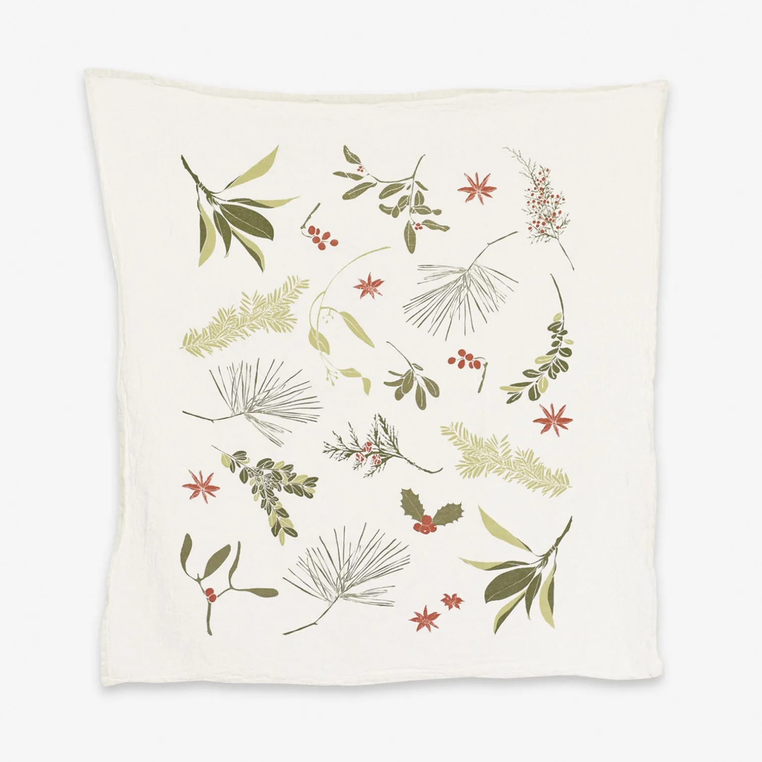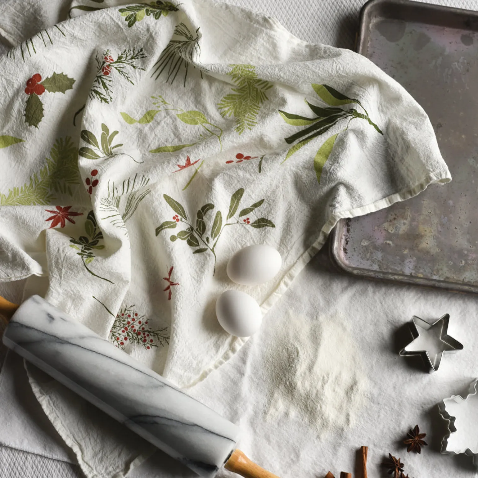Inspired by the clippings of boughs and berries during the holidays, this winter sprigs design will work year-round in your kitchen. Screen printed on flour sack cotton to preserve its uniquely soft, absorbent and durable nature, this towel is machine washable and safe to bleach allowing it to hold up for everyday use.
