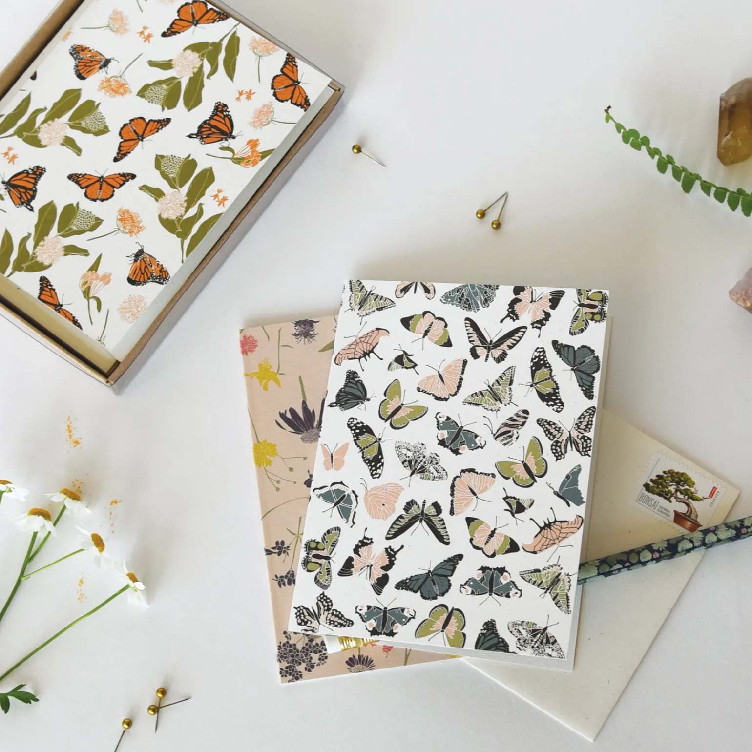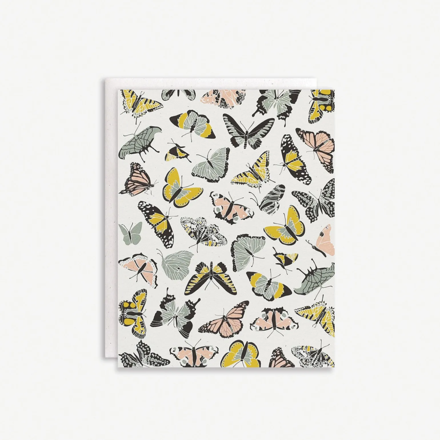 Send someone some sweet fluttery butterfly kisses. Printed on 110lb natural white, slightly speckled recycled paper, and paired with a matching cream envelope. Blank Inside.