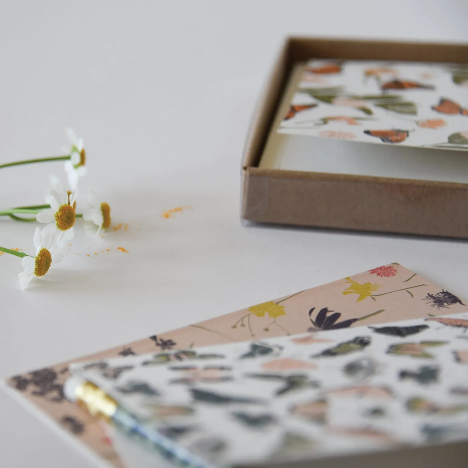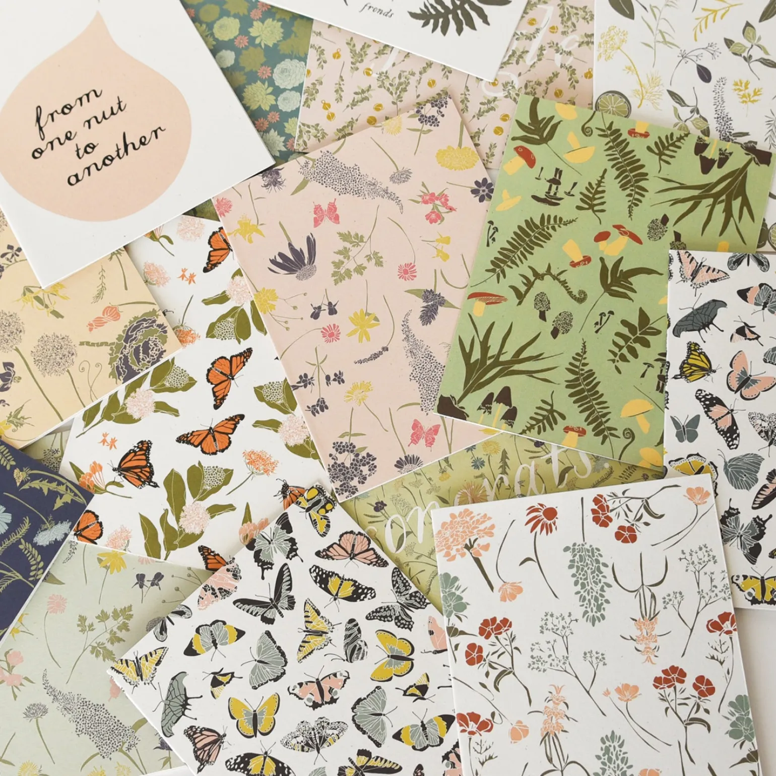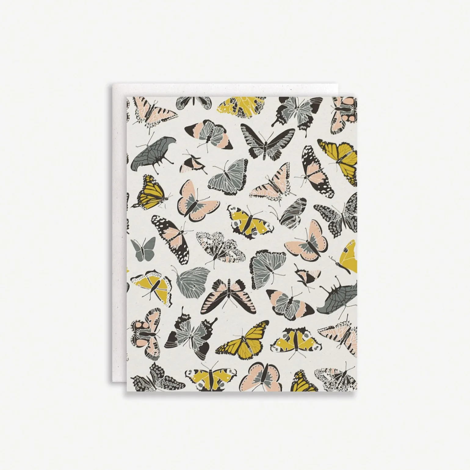 Send someone some sweet fluttery butterfly kisses. Printed on 110lb natural white, slightly speckled recycled paper, and paired with a matching cream envelope. Blank Inside.