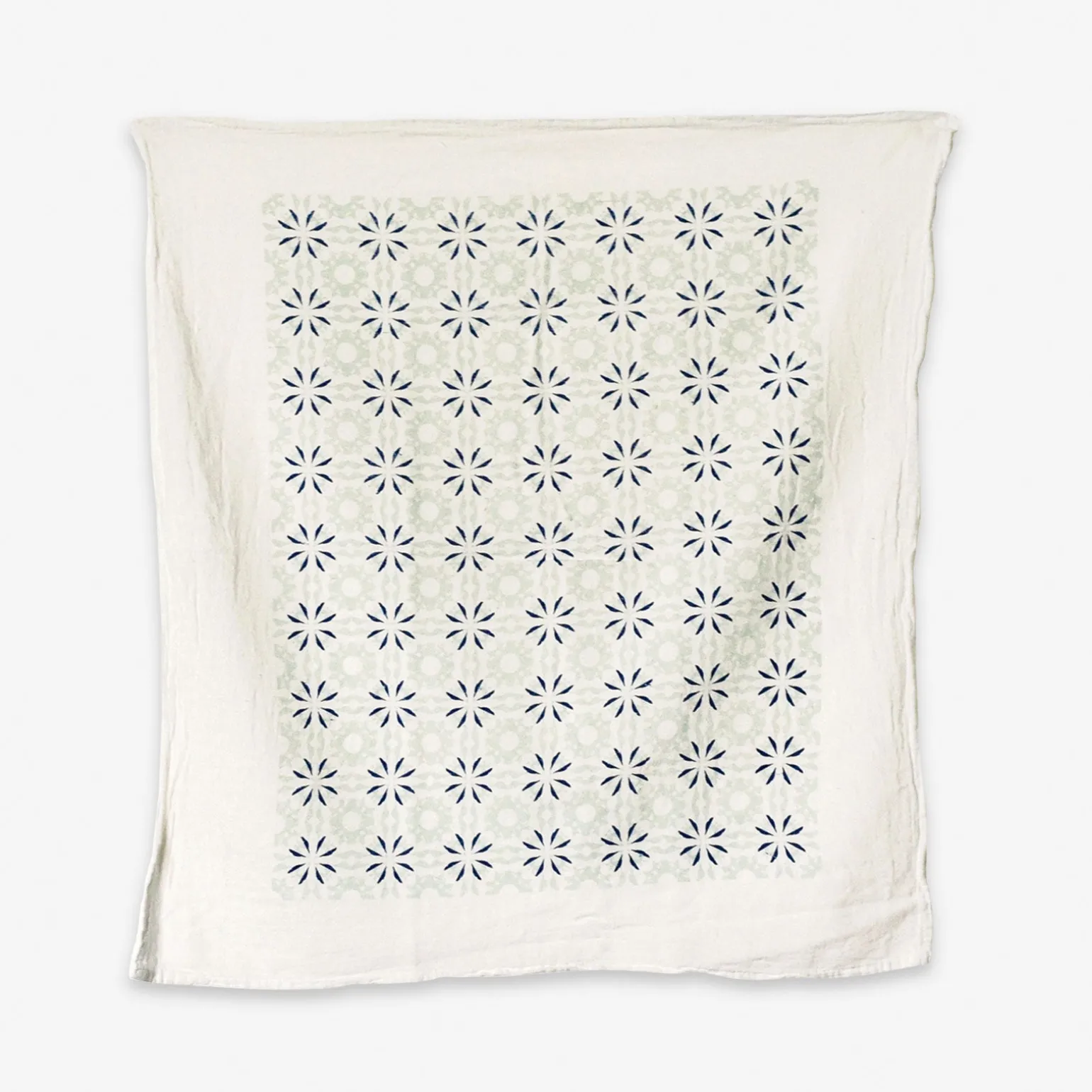 Our Mint Woodblock Chicory design is individually screen printed featuring an all-over pattern covering most of the towel. Screen printed on flour sack cotton to preserve its uniquely soft, absorbent, and durable nature, this towel is machine washable and safe to bleach, allowing it to hold up for everyday use.