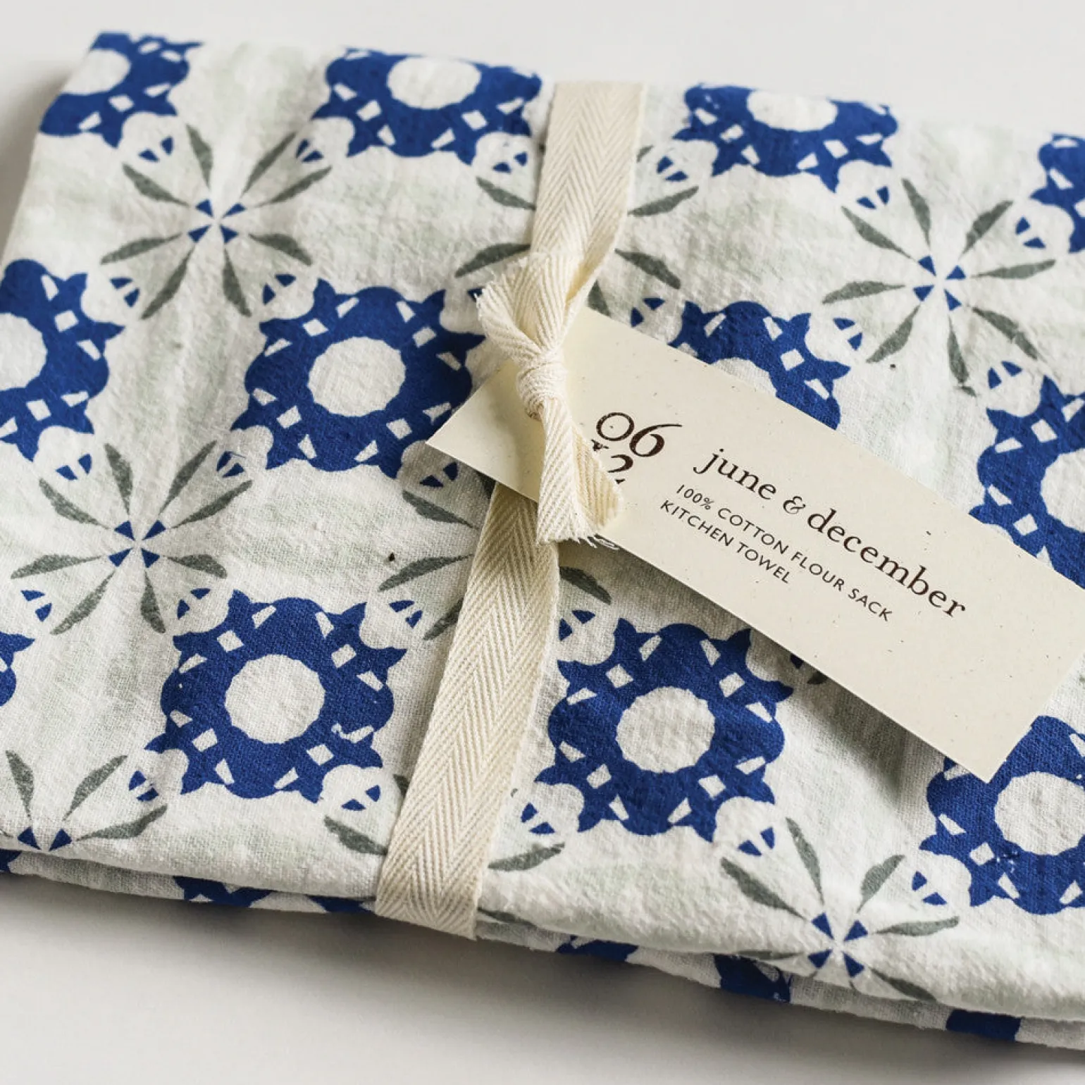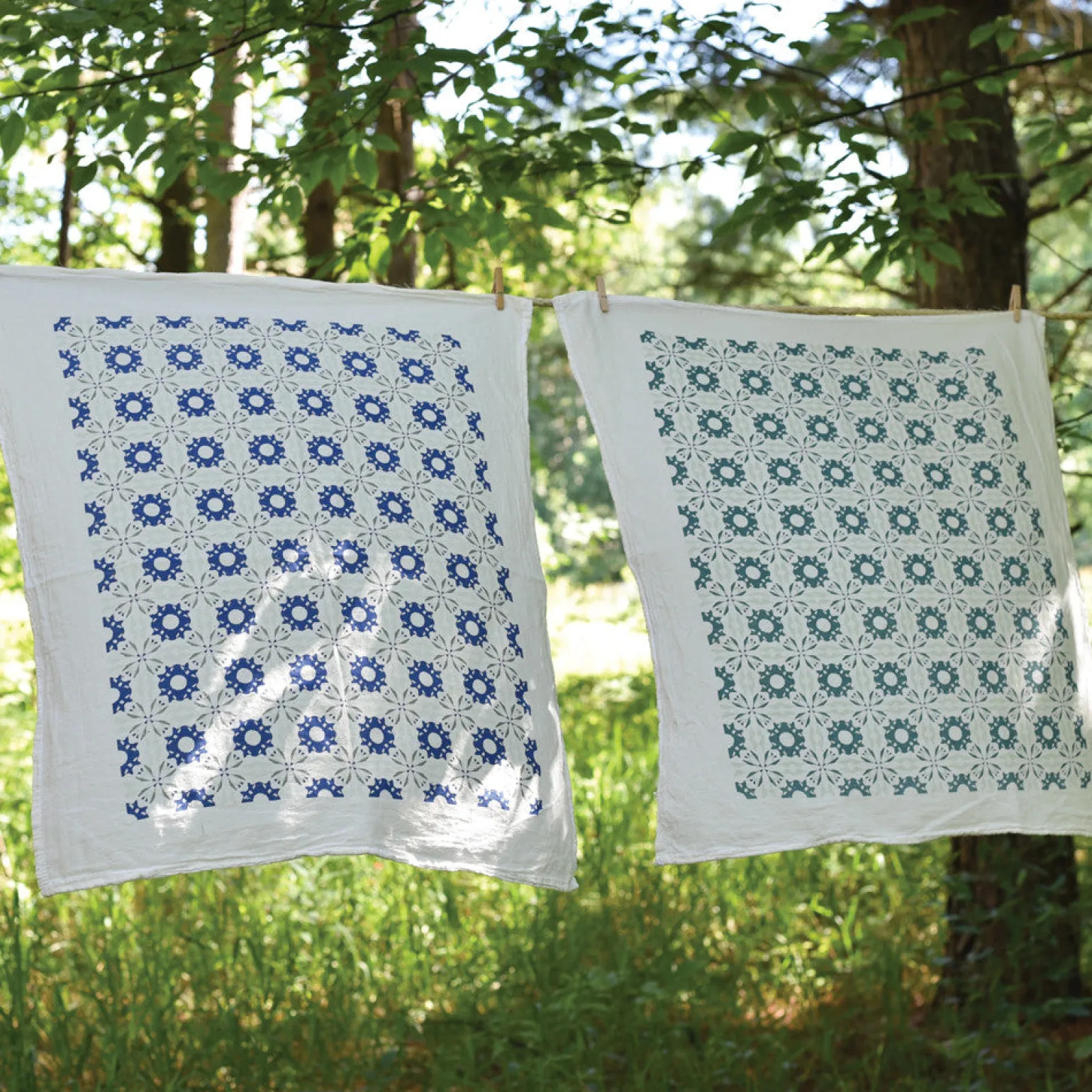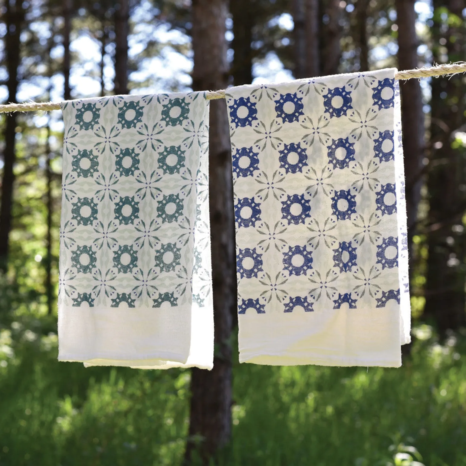 Our Navy Woodblock Chicory design is individually screen printed featuring an all-over pattern covering most of the towel. Screen printed on flour sack cotton to preserve its uniquely soft, absorbent, and durable nature, this towel is machine washable and safe to bleach, allowing it to hold up for everyday use.
