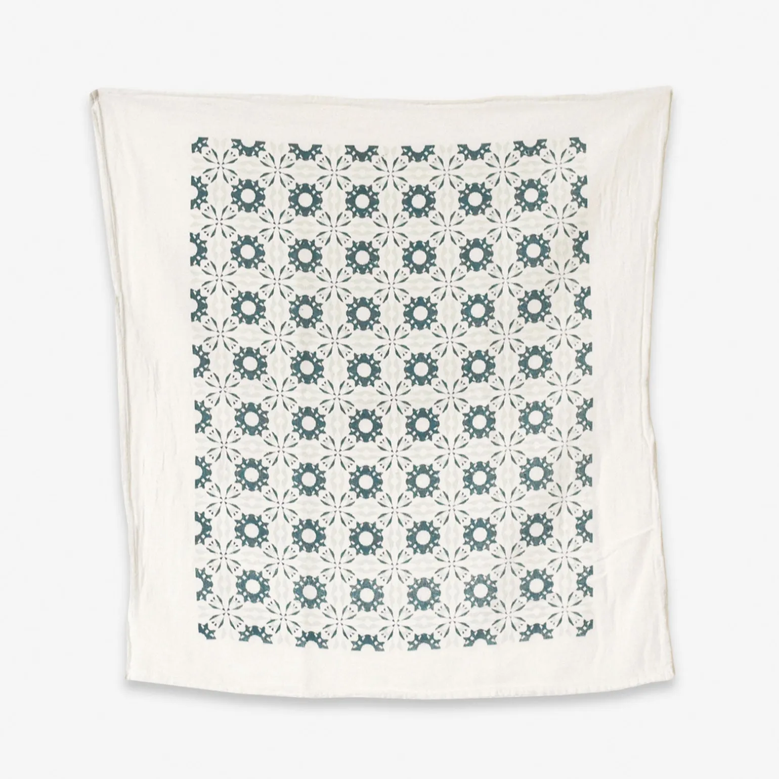 Our Slate Woodblock Chicory design is individually screen printed featuring an all-over pattern covering most of the towel. Screen printed on flour sack cotton to preserve its uniquely soft, absorbent, and durable nature, this towel is machine washable and safe to bleach, allowing it to hold up for everyday use.