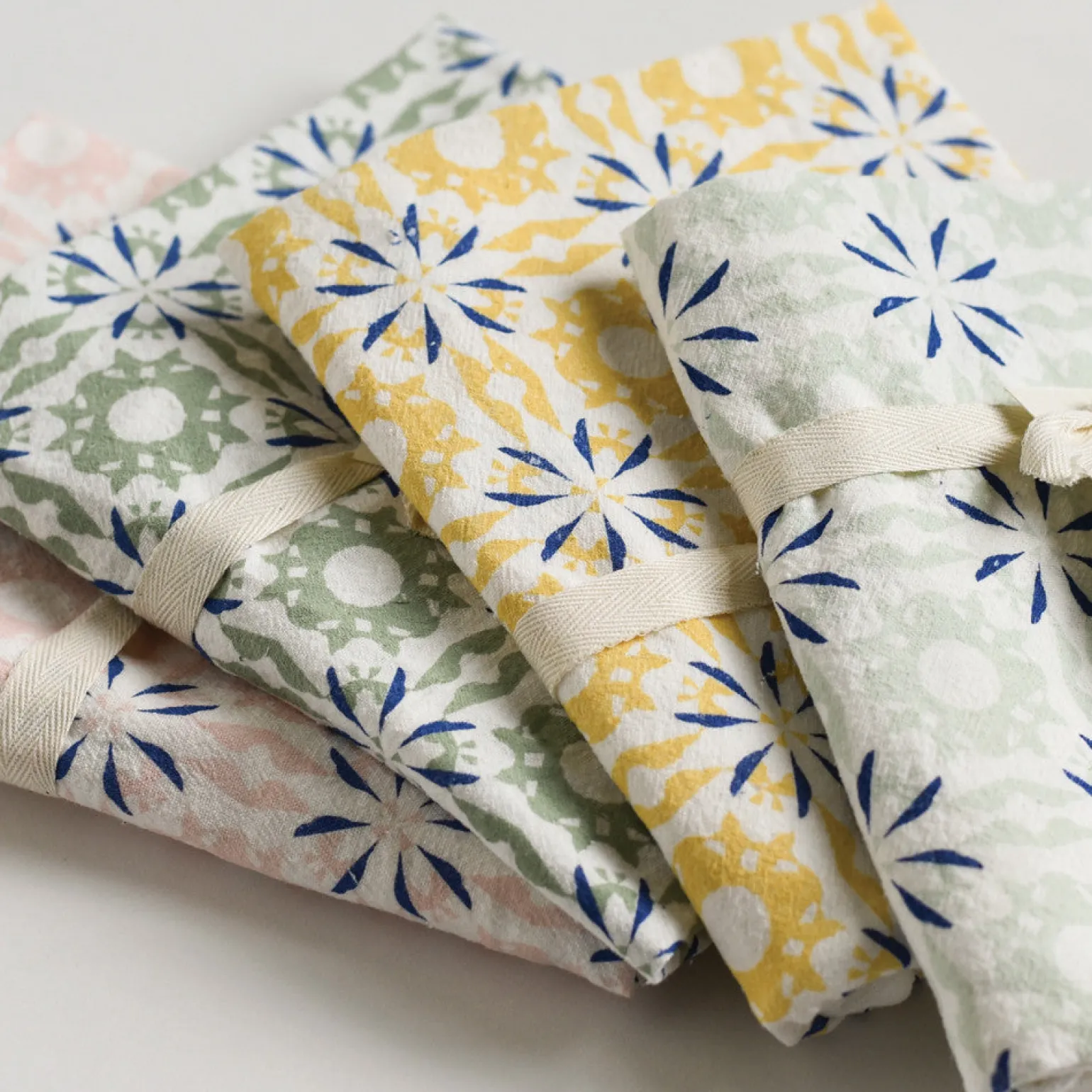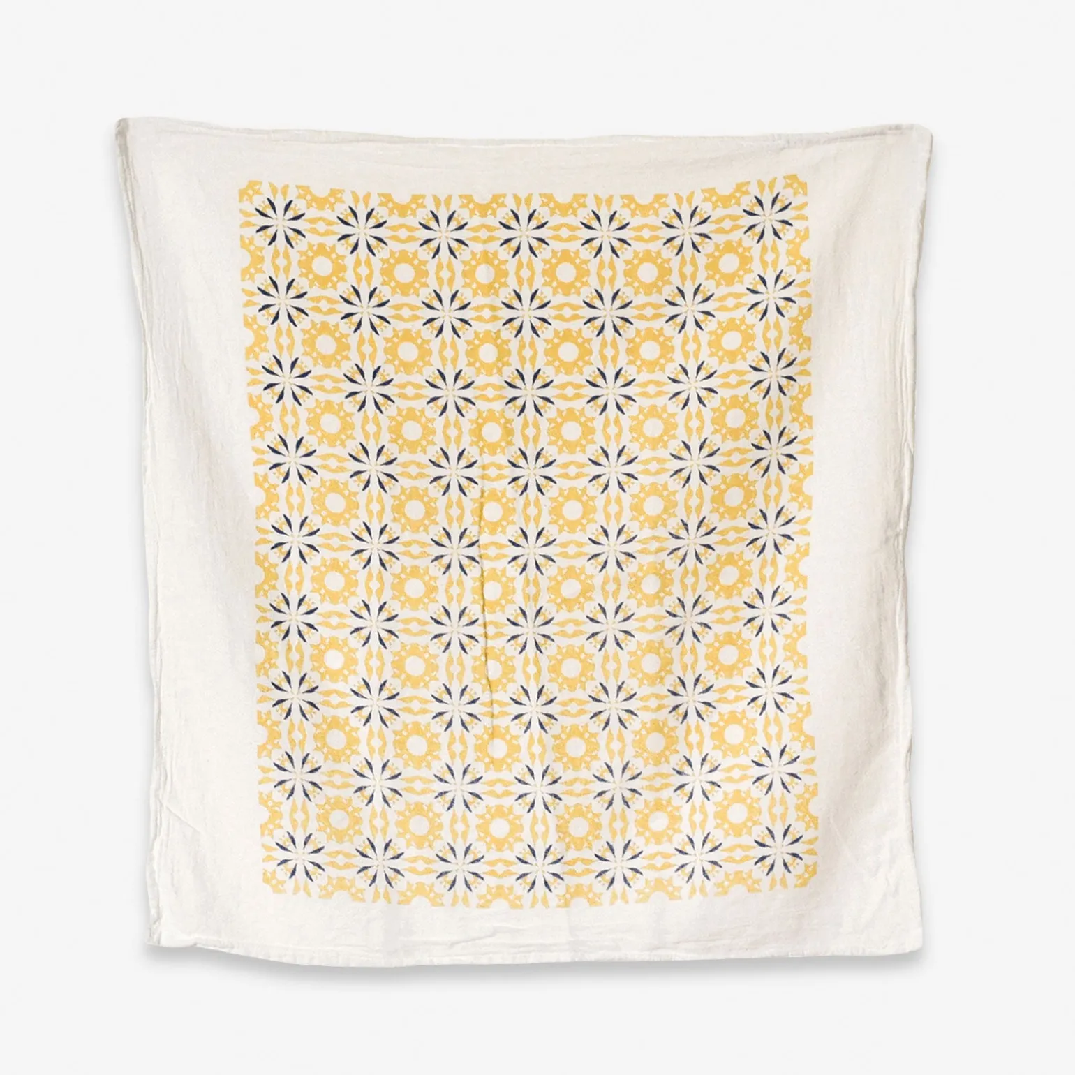 Our Tangerine Woodblock Chicory design is individually screen printed featuring an all-over pattern covering most of the towel. Screen printed on flour sack cotton to preserve its uniquely soft, absorbent, and durable nature, this towel is machine washable and safe to bleach, allowing it to hold up for everyday use.