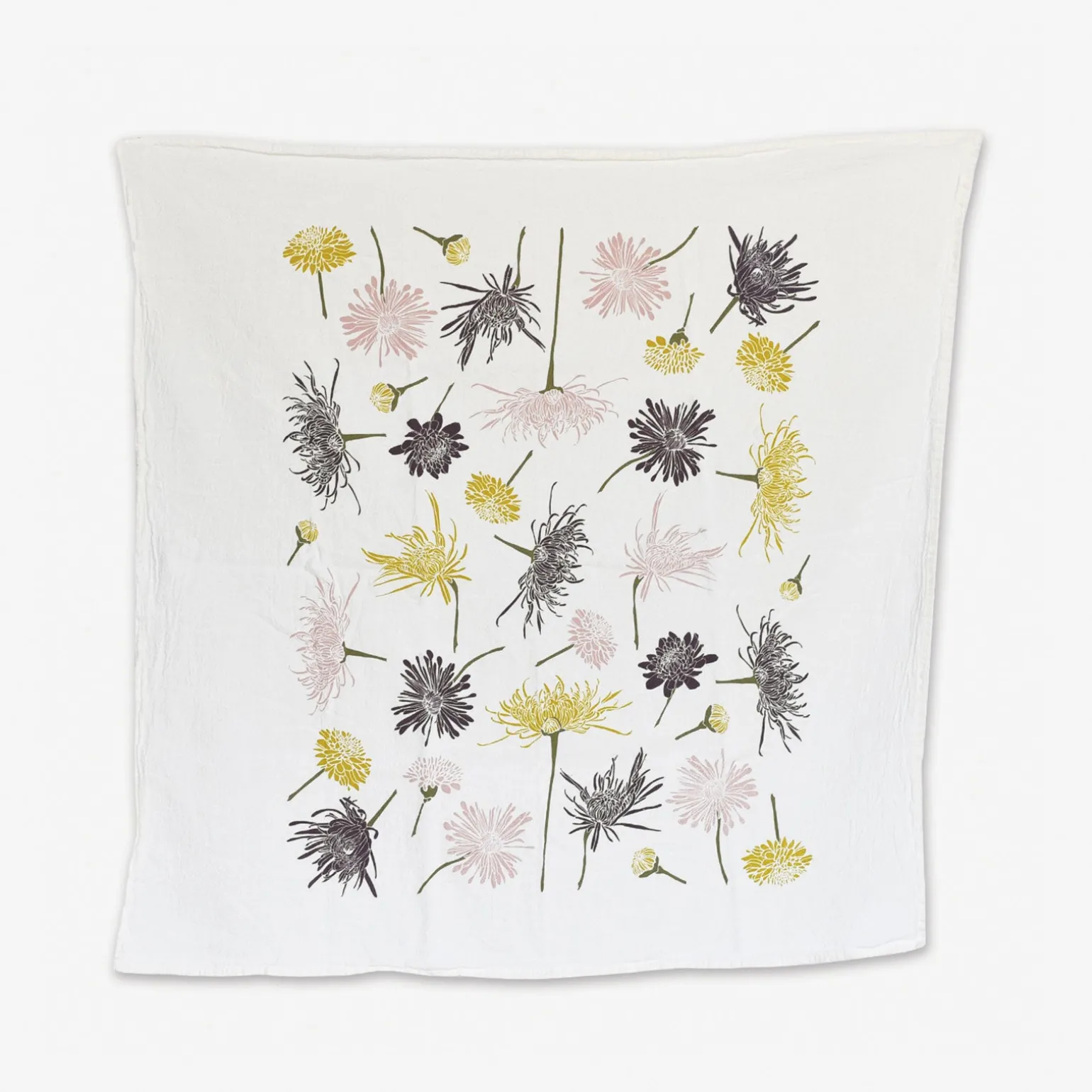 Chrysanthemums symbolize friendship, love, optimism, joy, and happiness, which is why we like to celebrate their delicate petals year-round. Screen printed on flour sack cotton to preserve its uniquely soft, absorbent, and durable nature, this towel is machine washable and safe to bleach, allowing it to hold up for everyday use.