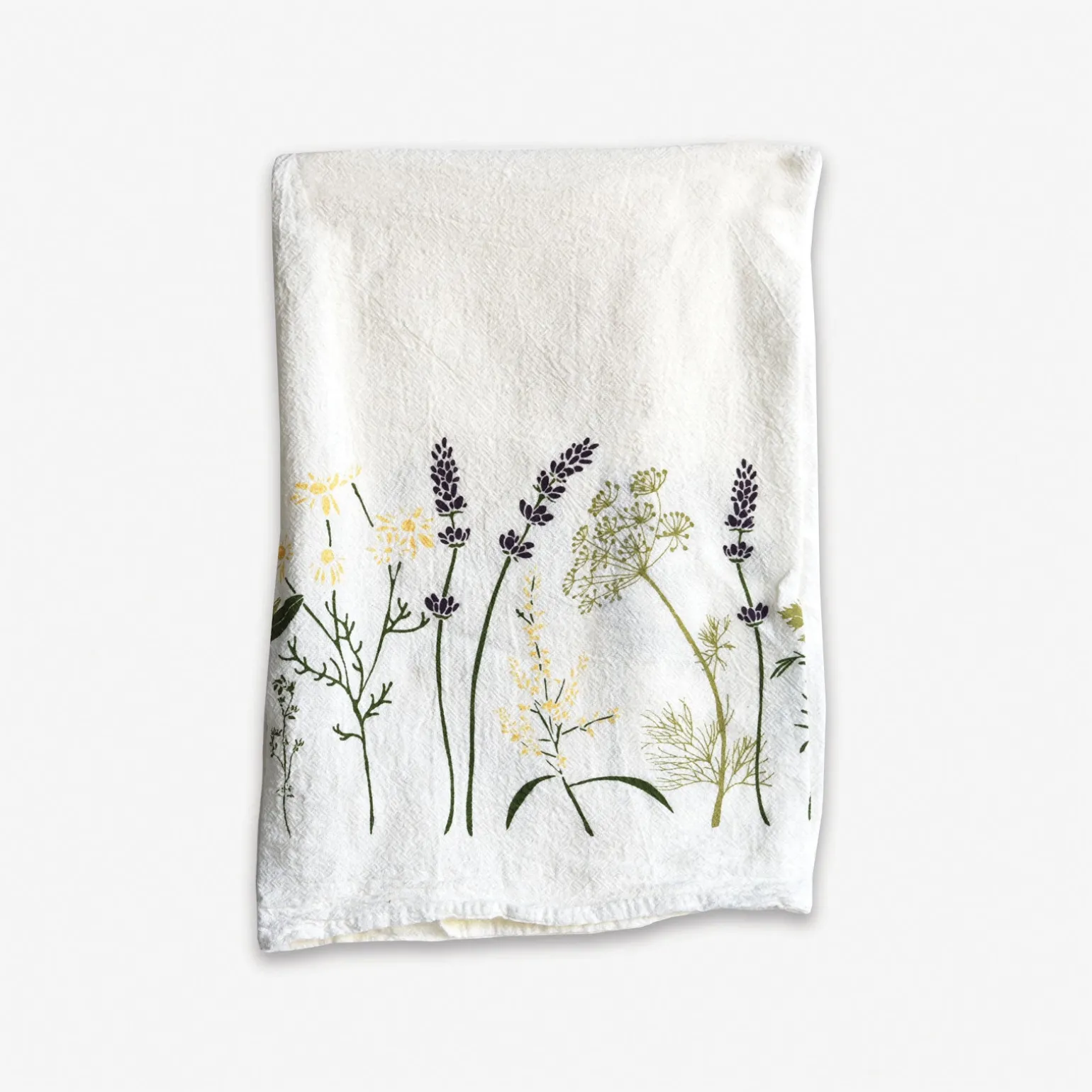 Inspired by the Victorian Era’s beautiful, hidden meanings of flowers used to communicate in secret, this towel features a bouquet of lavender, sage, chamomile, and rosemary, to name a few. Each herb symbolizes and embodies the meanings of courage and protection. Screen printed on flour sack cotton to preserve its uniquely soft, absorbent, and durable nature, this towel is machine washable and safe to bleach, allowing it to hold up for everyday use.