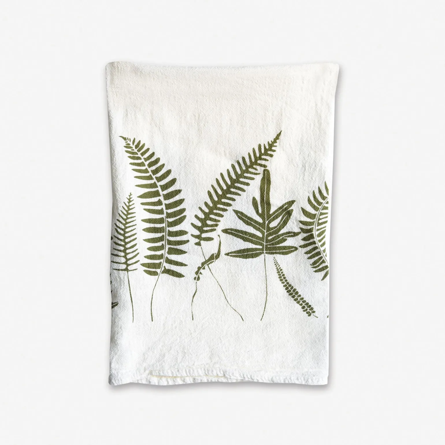 Sword fern, holly fern, and Christmas fern fronds are some of the Evergreen Ferns that grace this towel. Symbolic of eternal youth, these ferns stay green year-round. Screen printed on flour sack cotton to preserve its uniquely soft, absorbent, and durable nature, this towel is machine washable and safe to bleach, allowing it to hold up for everyday use.