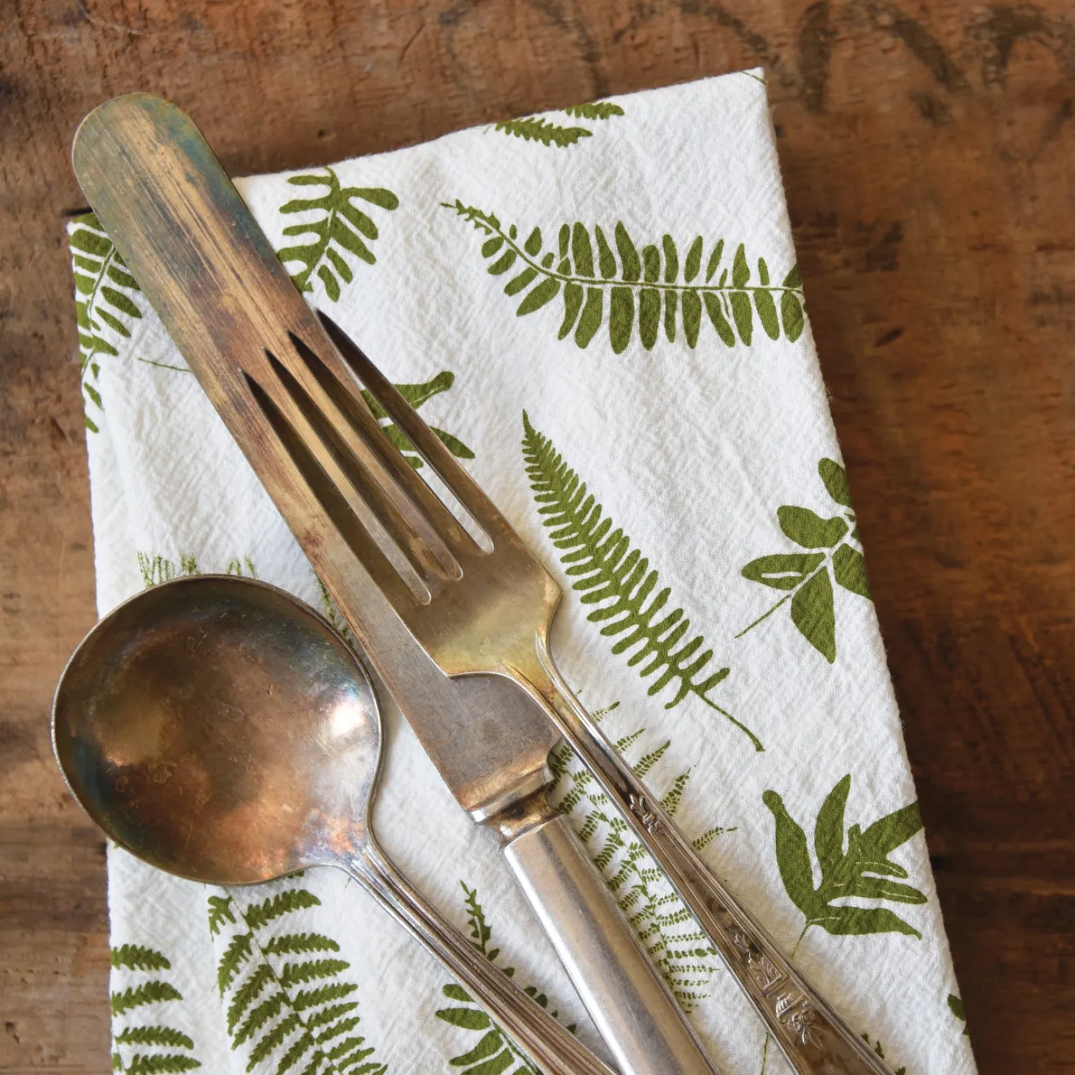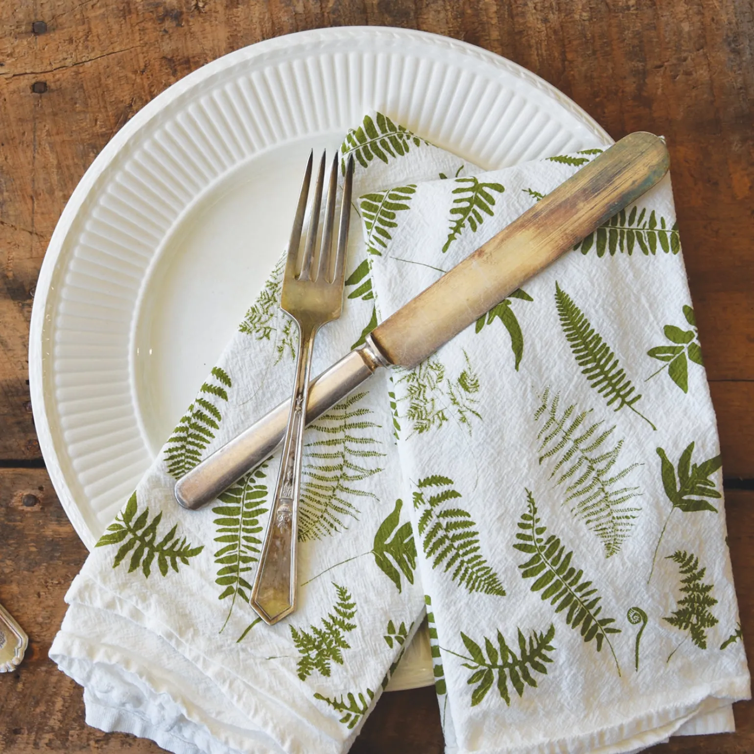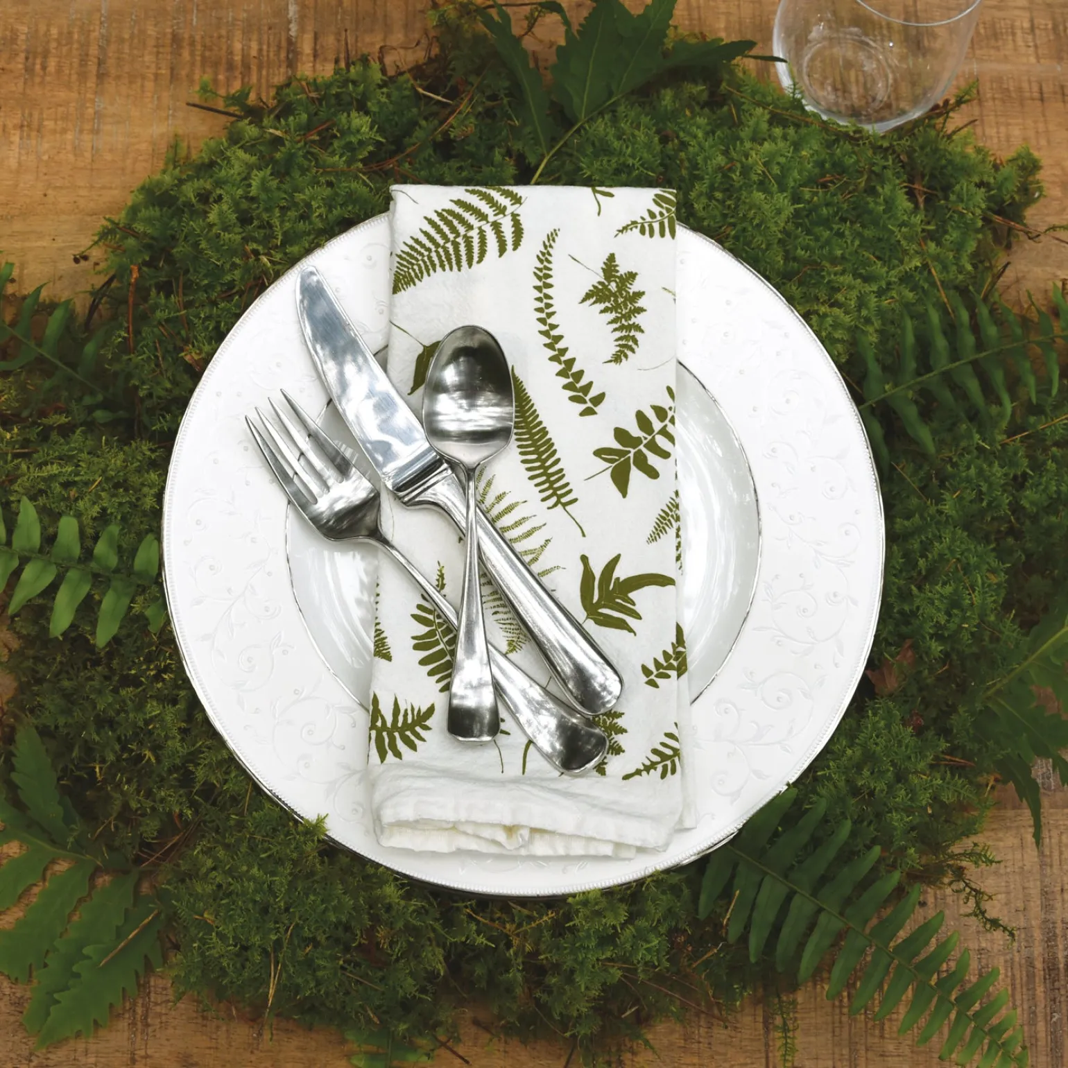 Featuring a pattern of ferns often found cascading down waterfalls or on the forest floor, this pattern adds some greenery to your table. These napkins are extremely soft and absorbent, meaning they work just like you want your napkins to. Plus, they are safe to bleach, making them perfect for the messiest of dinners!