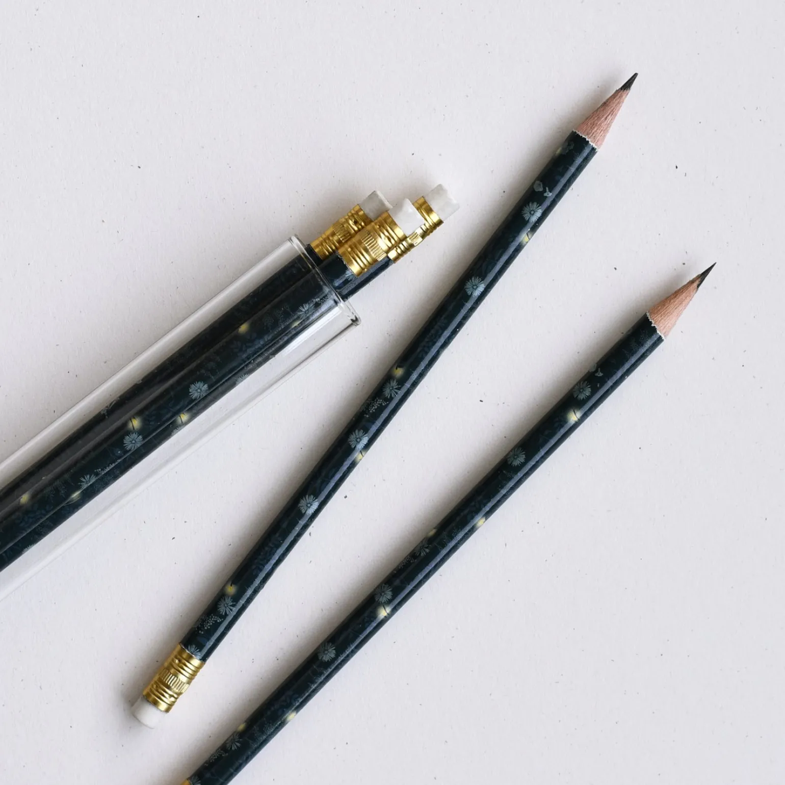 Created with the environment in mind, our glass pencil terrariums were designed to make the packaging as functional as the pencils inside. This set includes a mix of five firefly patterned pencils. Turn the glass tube into a dreamy tiny terrarium, encapsulate nature, use as a vase, or for propagating your plant pretties. Share your #junedecemberstories