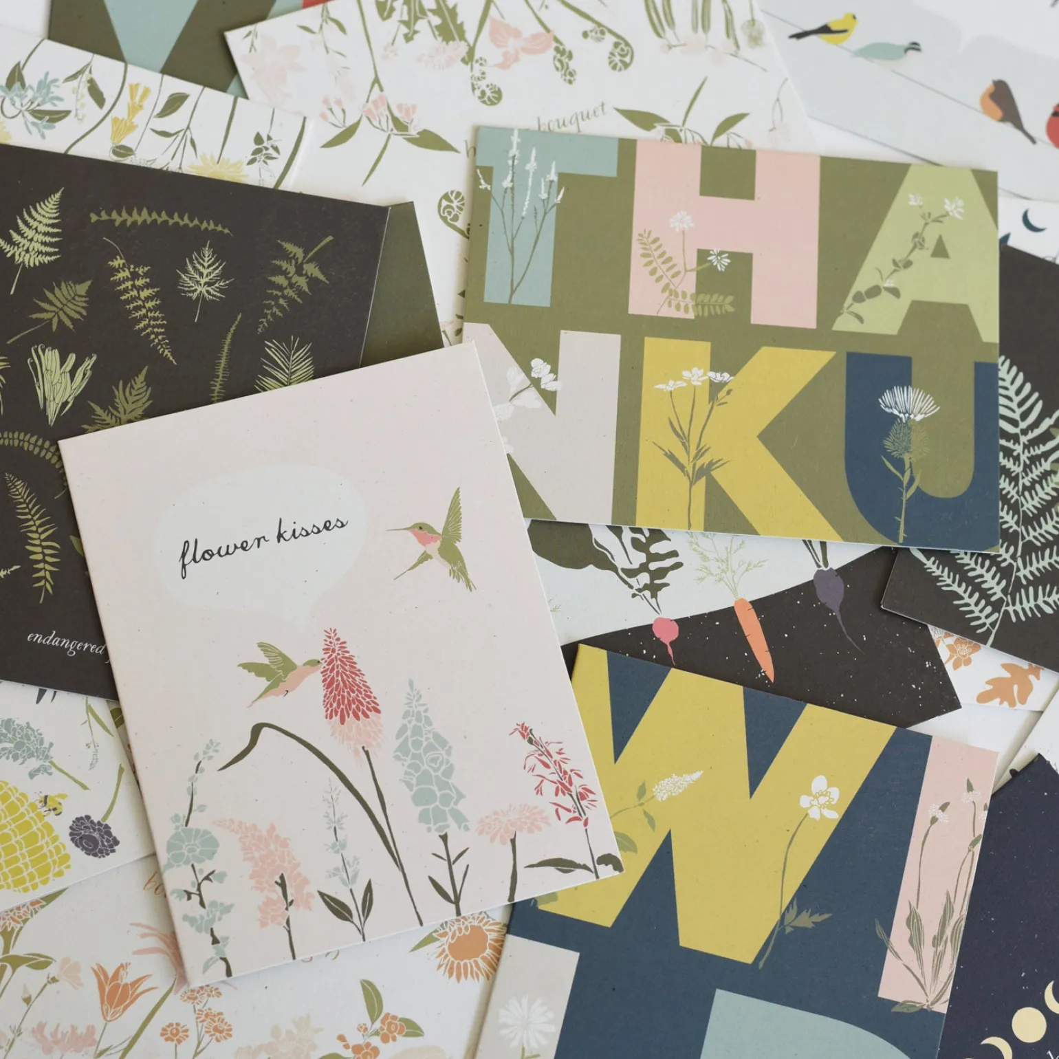In Portuguese, the word Hummingbird translates to Flower Kisser, which is fitting, but also wildly romantic! These cards are printed on 110lb natural white, slightly speckled recycled paper, and paired with matching cream envelopes. All cards are blank inside.