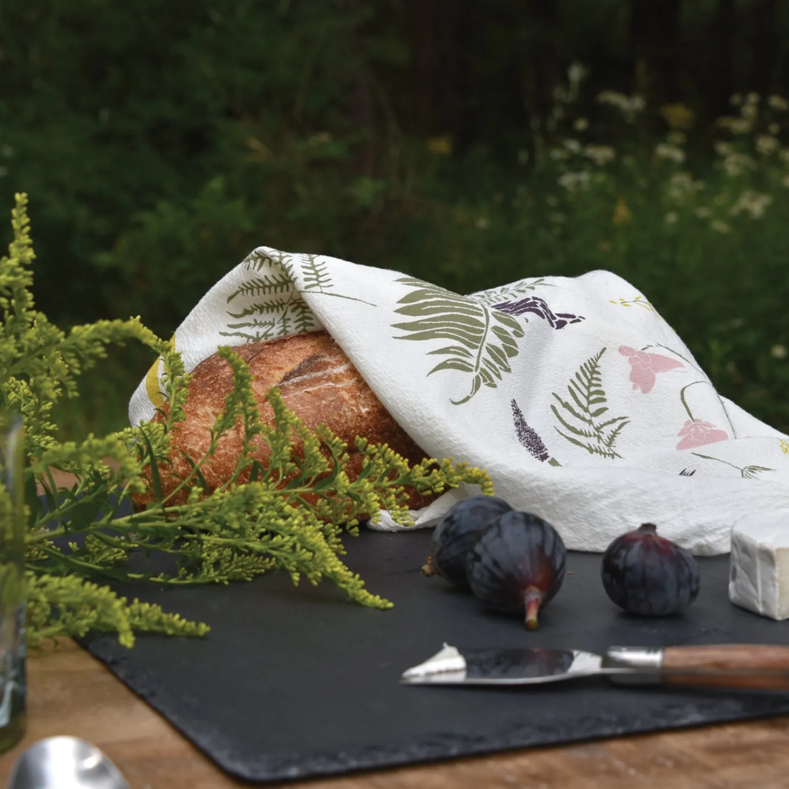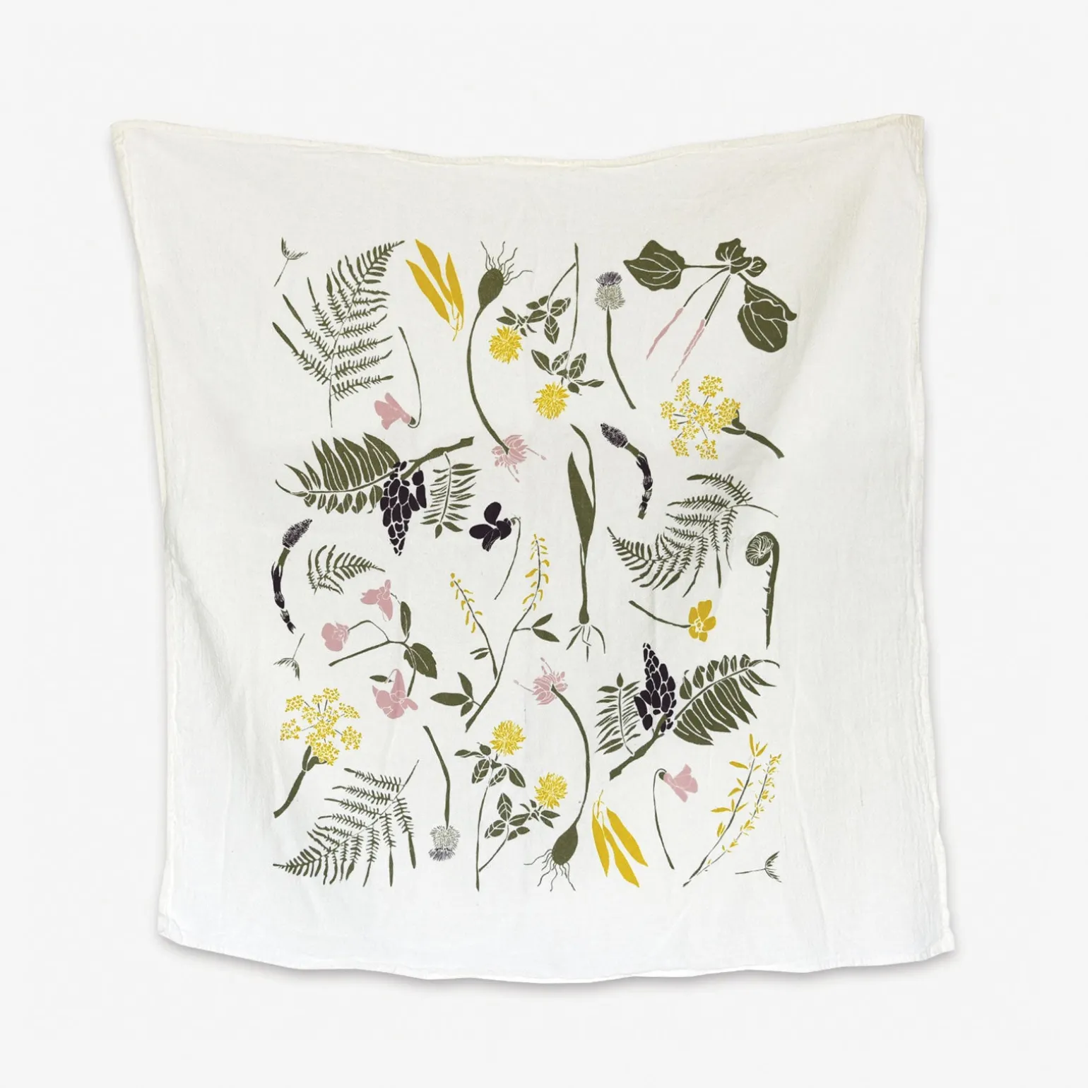 Inspired by our foraging excursions, this towel features a pattern of foraged pretties like horsetail shoots, sweet clover, wild leeks, and ostrich ferns. Screen printed on flour sack cotton to preserve its uniquely soft, absorbent and durable nature, this towel is machine washable and safe to bleach allowing it to hold up for everyday use.