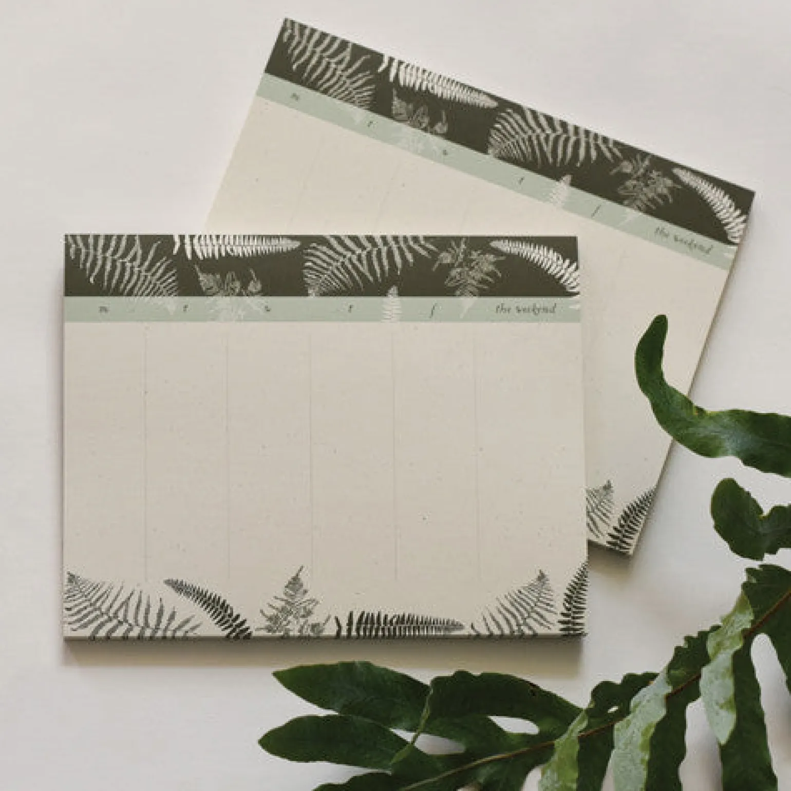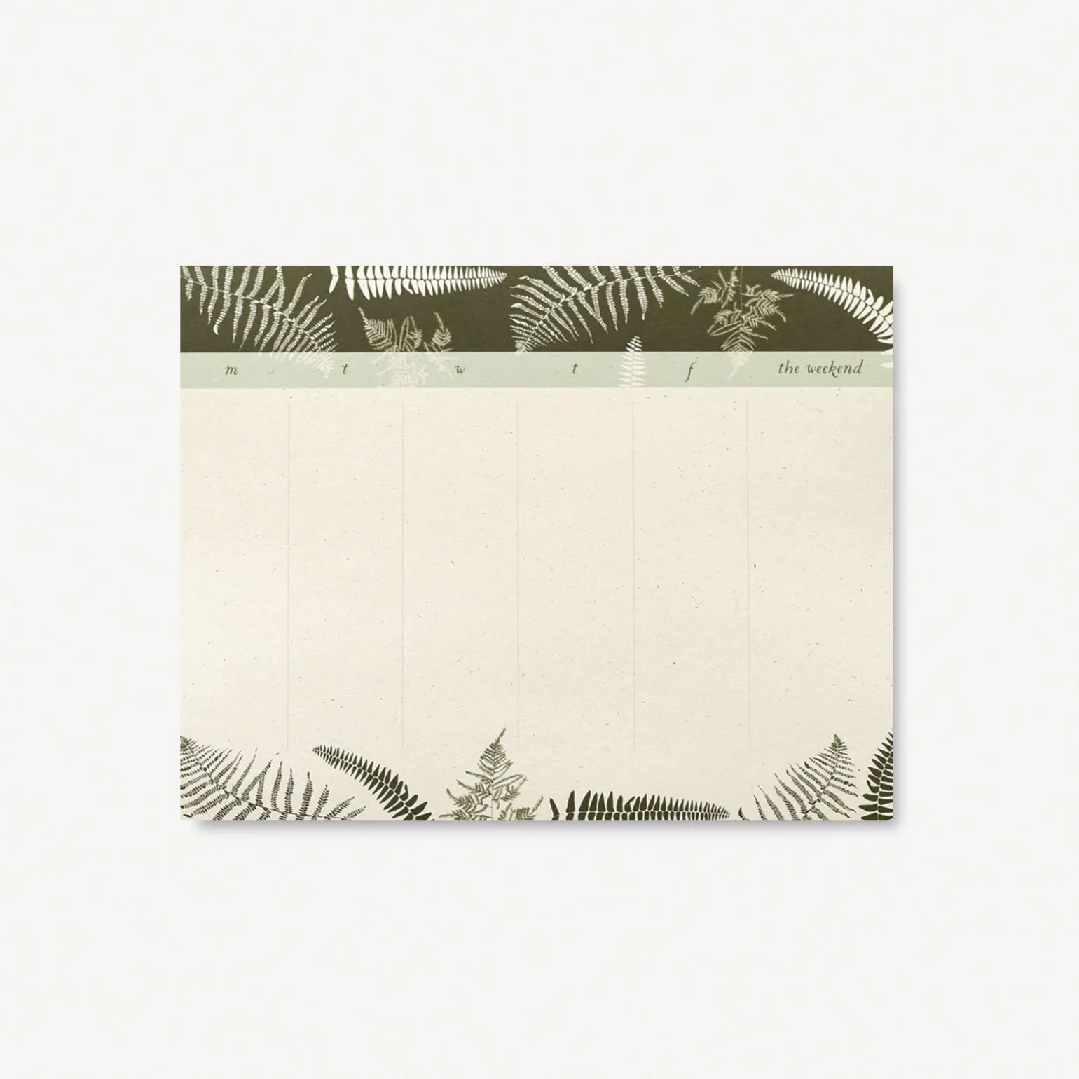 Start your day like an early morning walk through the forest among the sunlit fronds. These large Weekly Desk Pads give you ample room to write out your week while allowing room to plan in those early morning walks. Our notepads, desk pads, and mini notes are printed in Michigan on recycled paper, made from 100% post-consumer waste. They’re great for planning a garden, a market list, or writing to-do’s, and the pages are thick enough to use your favorite permanent marker.