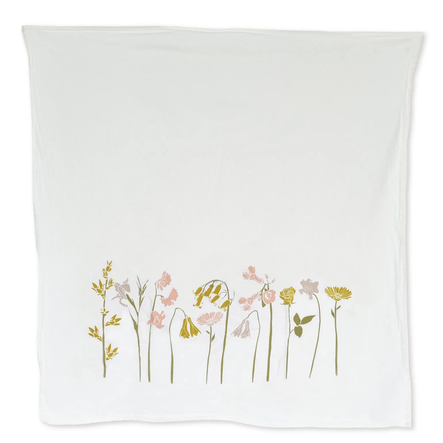 Inspired by the Victorian Era’s beautiful, hidden meanings of flowers used to communicate in secret, this towel features a bouquet of calendula, bluebell, lisianthus, and sweet pea, to name a few. Each flower symbolizes and embodies the meaning of gratitude. Screen printed on flour sack cotton to preserve its uniquely soft, absorbent, and durable nature, this towel is machine washable and safe to bleach, allowing it to hold up for everyday use.