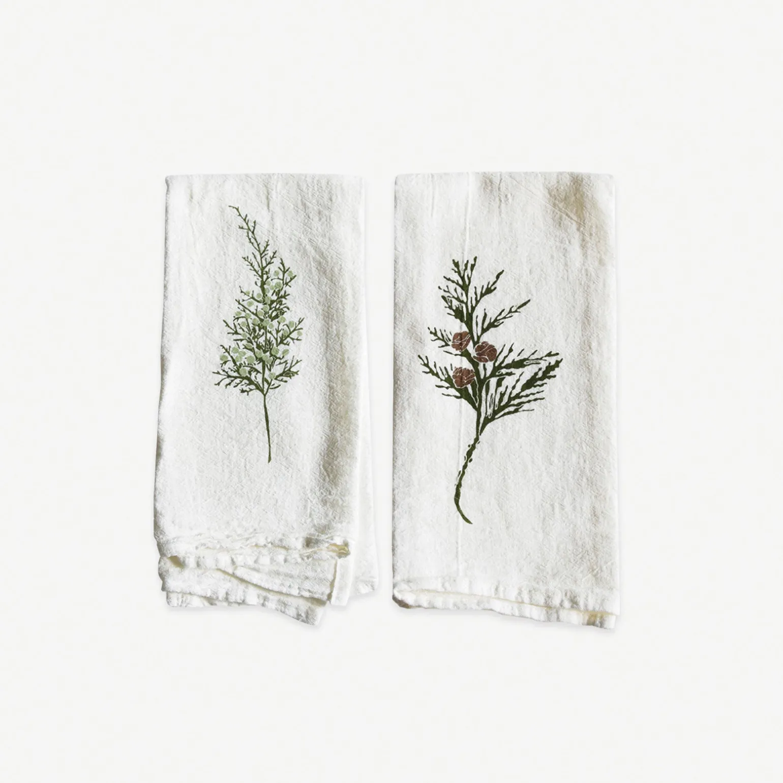 Our sweet juniper + cedar spring napkins add greenery to your place settings all winter long. These napkins are extremely soft and absorbent, meaning they work just like you want your napkins to. Plus, they are safe to bleach, making them perfect for the messiest of dinners!