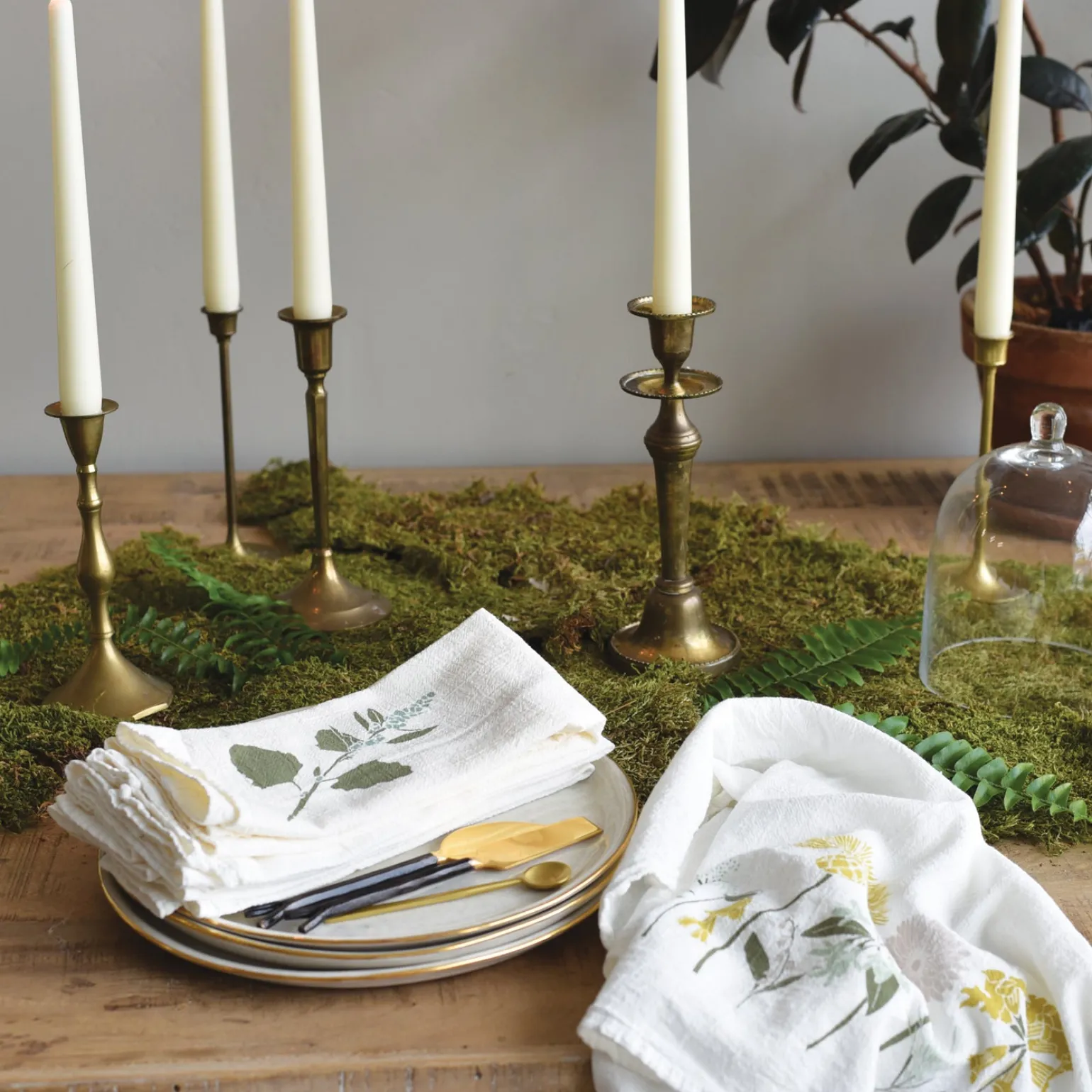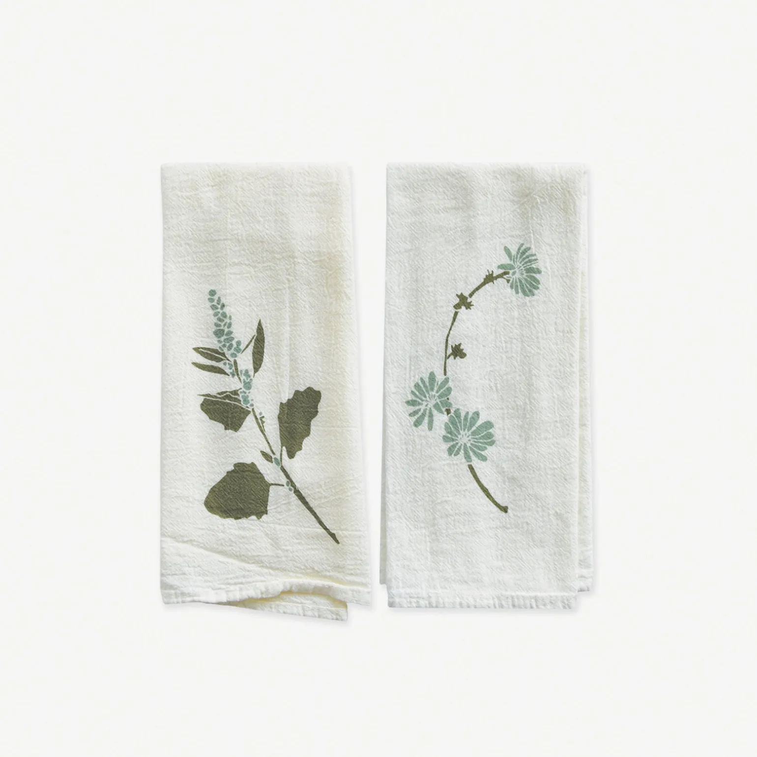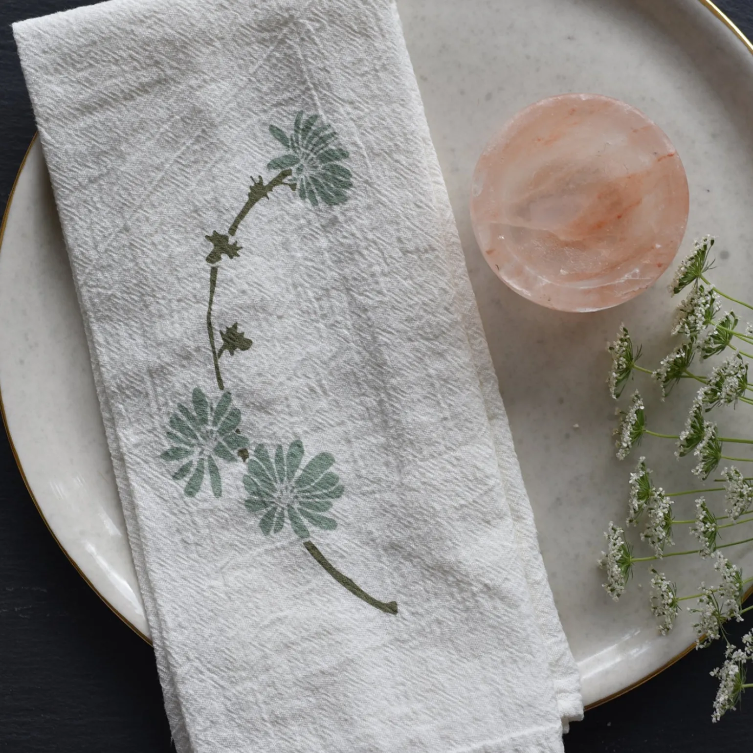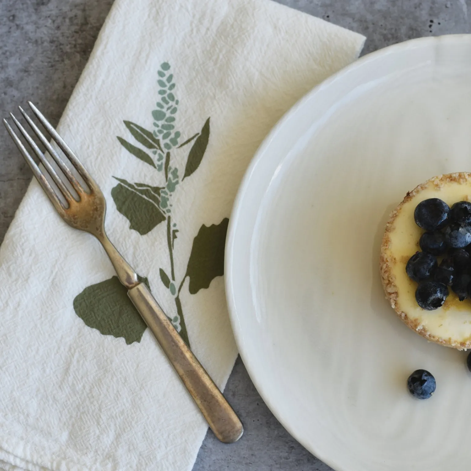 Our lambs quarters + chicory napkins add a little wild to your table. These napkins are extremely soft and absorbent, meaning they work just like you want your napkins to. Plus, they are safe to bleach, making them perfect for the messiest of dinners!