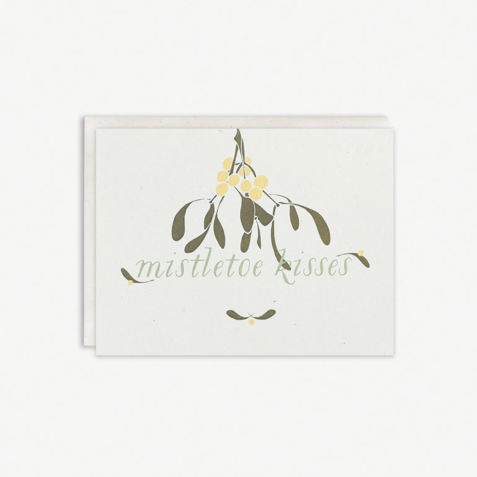 Whether you’re the sender or recipient, Mistletoe Kisses are a fun way to celebrate the holiday season! Printed on 110lb natural white, slightly speckled recycled paper, and paired with a matching cream envelope. Blank Inside.