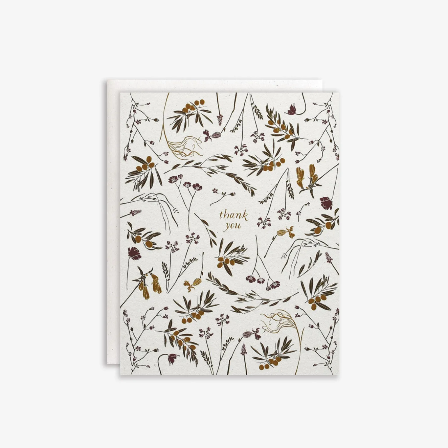 Olive branches, poppies, wild peonies, and European feather grasses are just some of the olive grove wildflowers that grace these cards. Cards are printed on 110lb natural white, slightly speckled recycled paper, and paired with matching cream envelopes. All cards are blank inside.