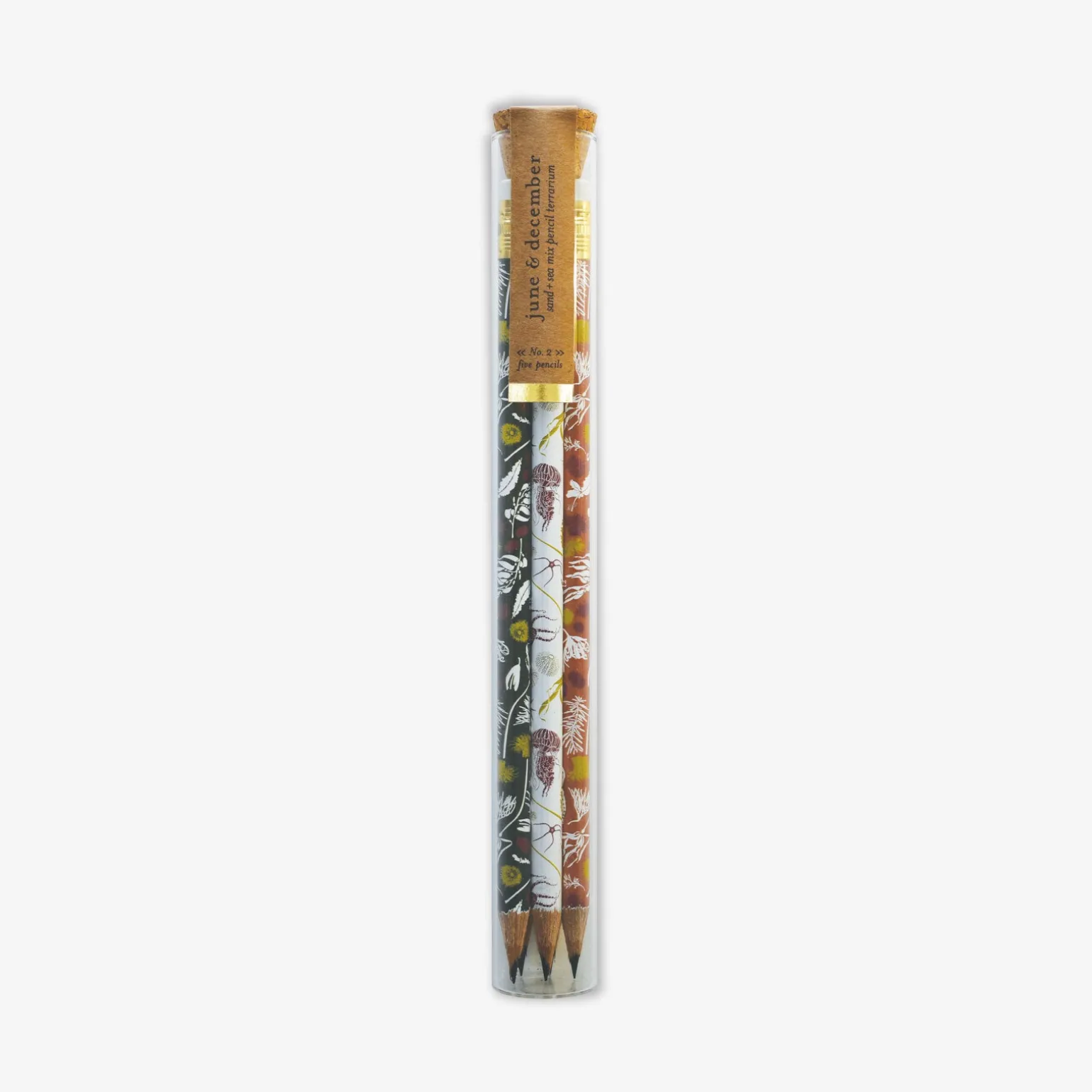 Created with the environment in mind, our glass pencil terrariums were designed to make the packaging as functional as the pencils inside. This set includes a mix of five patterned pencils – one tide pool, one sea wilds, one kelp forest, one sea flowers and one seaweeds. Turn the glass tube into a dreamy tiny terrarium, encapsulate nature, use as a vase, or for propagating your plant pretties. Share your #junedecemberstories
