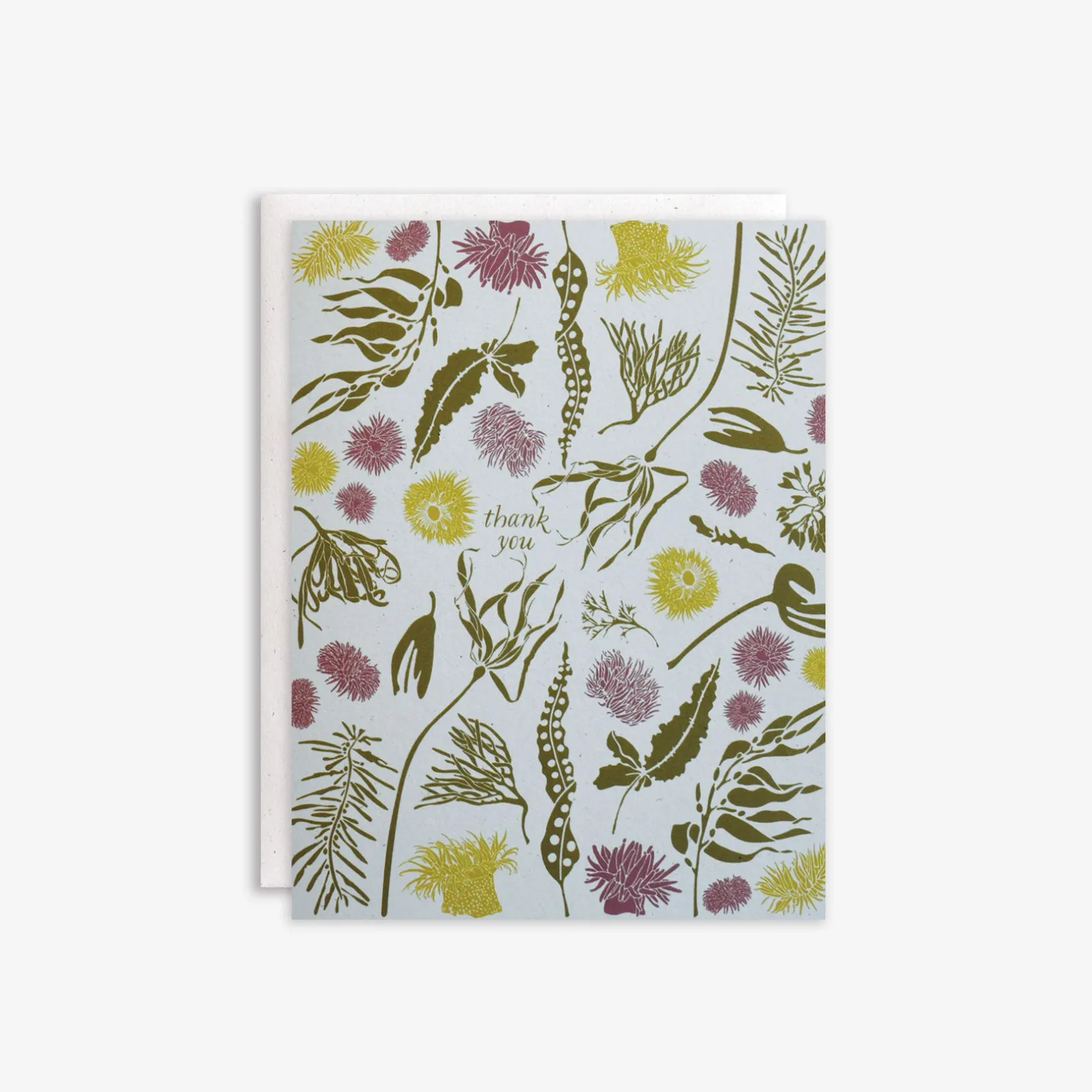 Send a thank you bouquet from the sea. Printed on 110lb natural white, slightly speckled recycled paper, and paired with a matching cream envelope. Blank Inside.