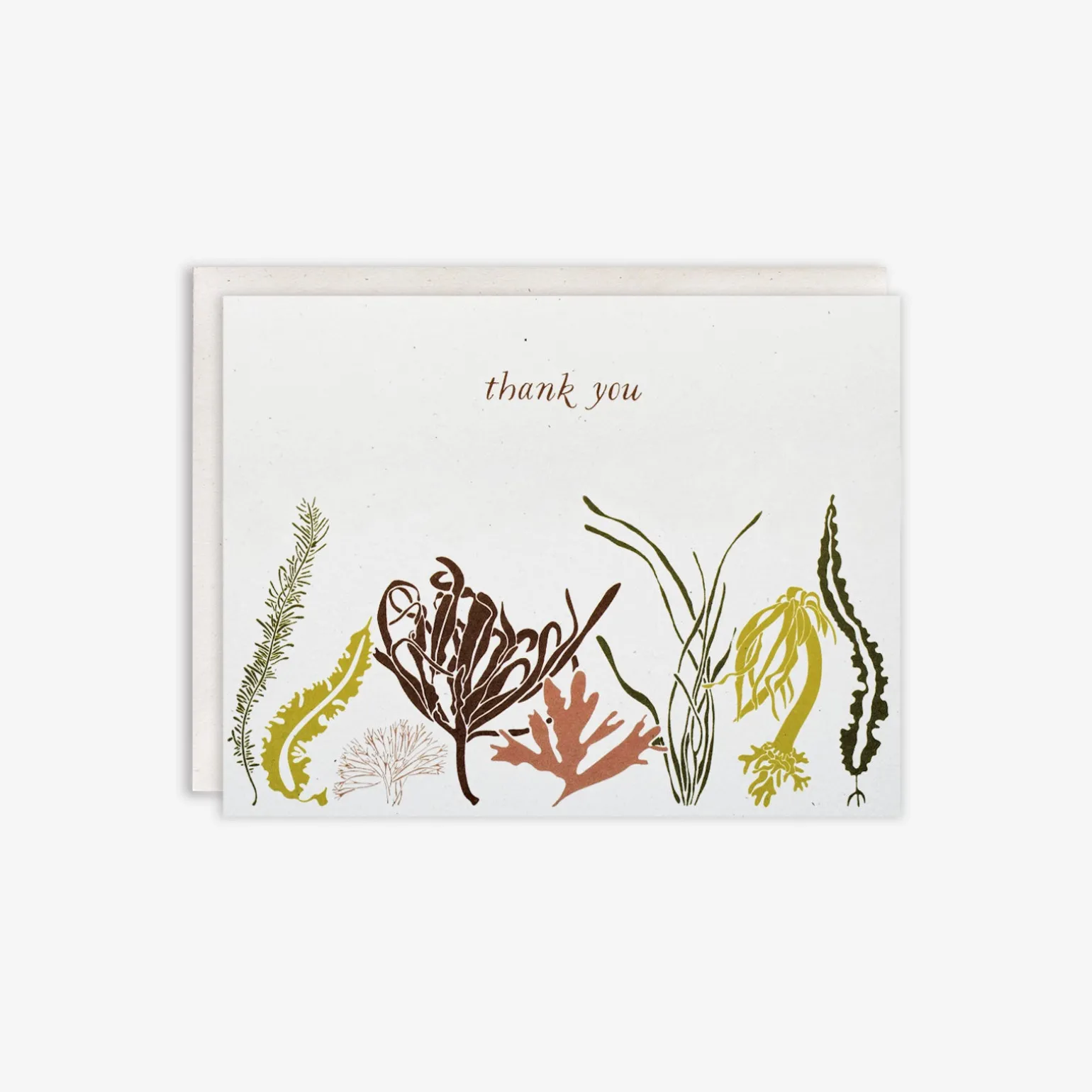 Send a thank you as wild as the sea. Printed on 110lb natural white, slightly speckled recycled paper, and paired with a matching cream envelope. Blank Inside.