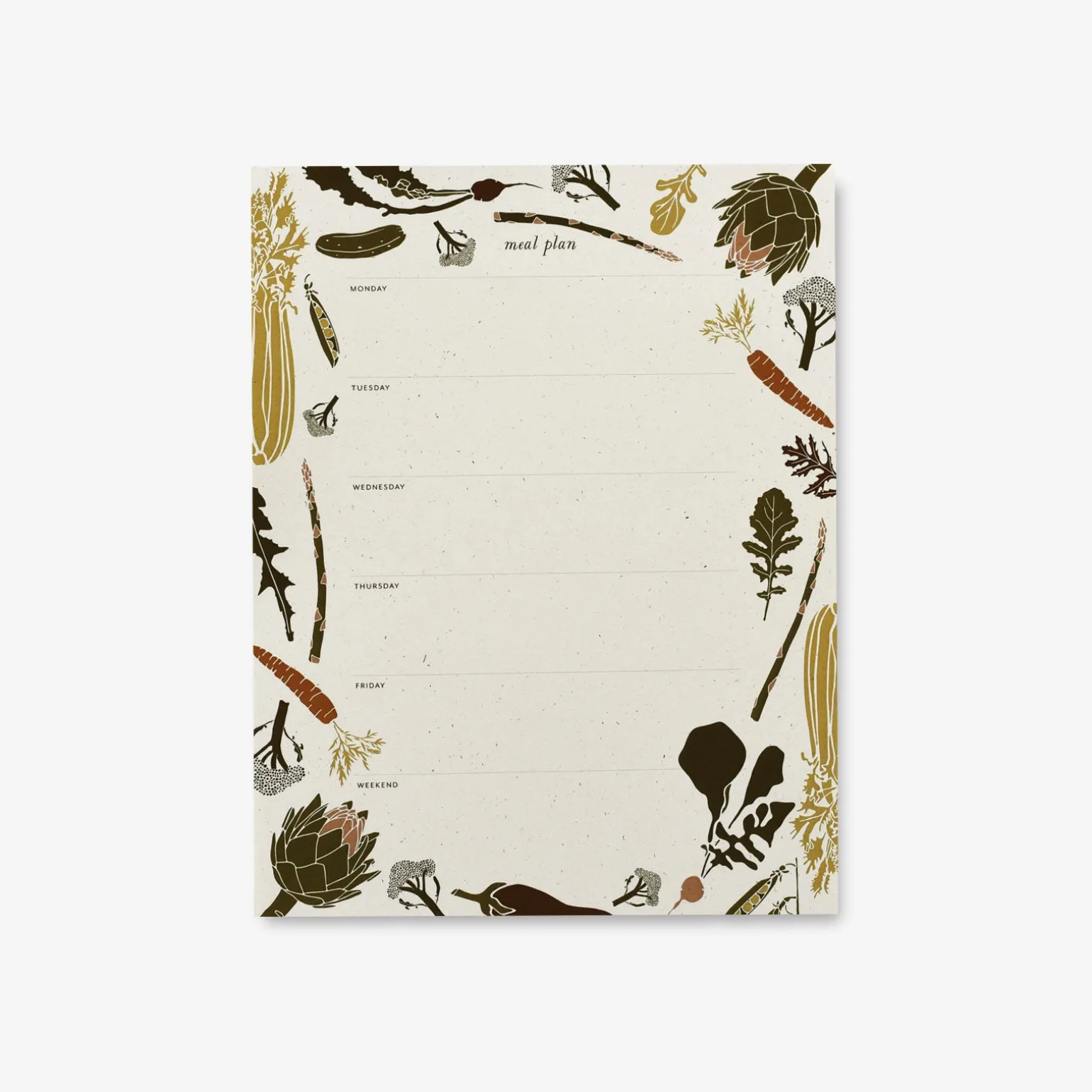 Plan your meals with vibrant spring veggies. These large Weekly Desk Pads give you ample room to plan your meals, and the pages are thick enough to use your favorite permanent marker. Our notepads, desk pads, and mini notes are printed in Michigan on recycled paper and made from 100% post-consumer waste.