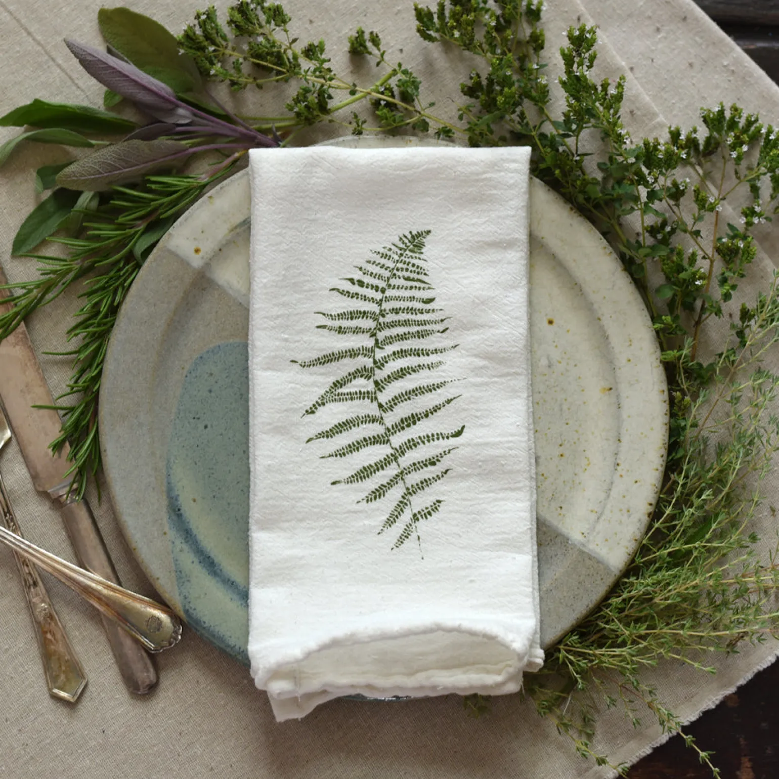 Featuring a mix of wood fern, resurrection fern, rock cap + rabbits foot ferns, these napkins bring the forest right to your table. These napkins are extremely soft and absorbent, meaning they work just like you want your napkins to. Plus, they are safe to bleach, making them perfect for the messiest of dinners!