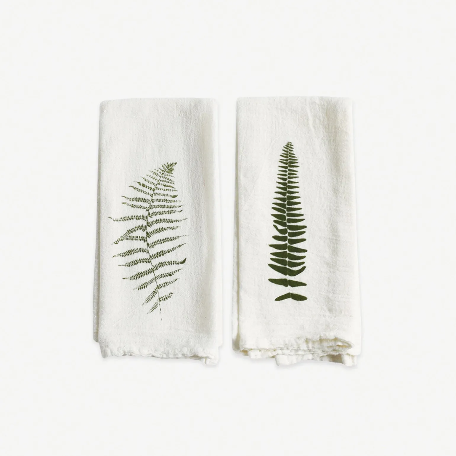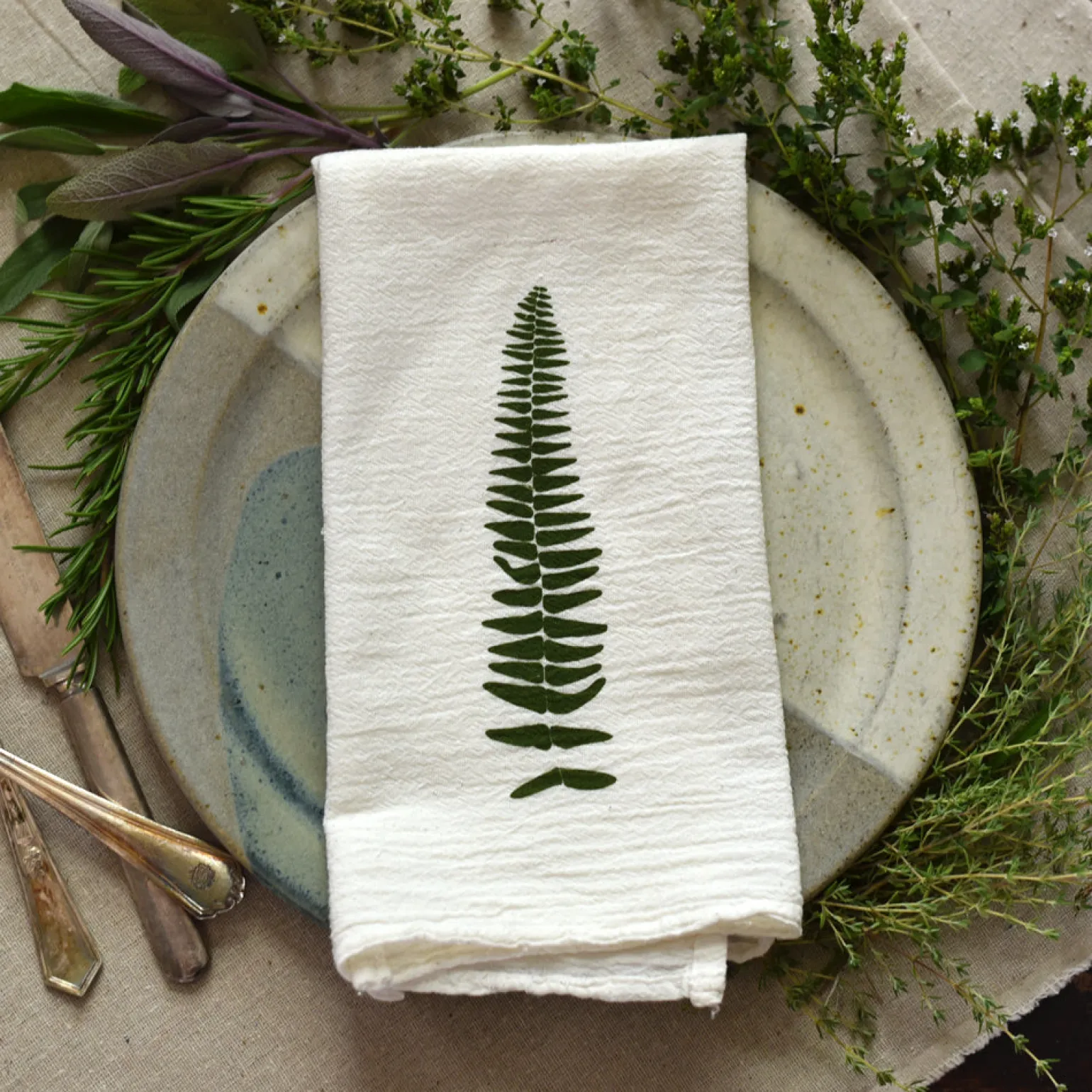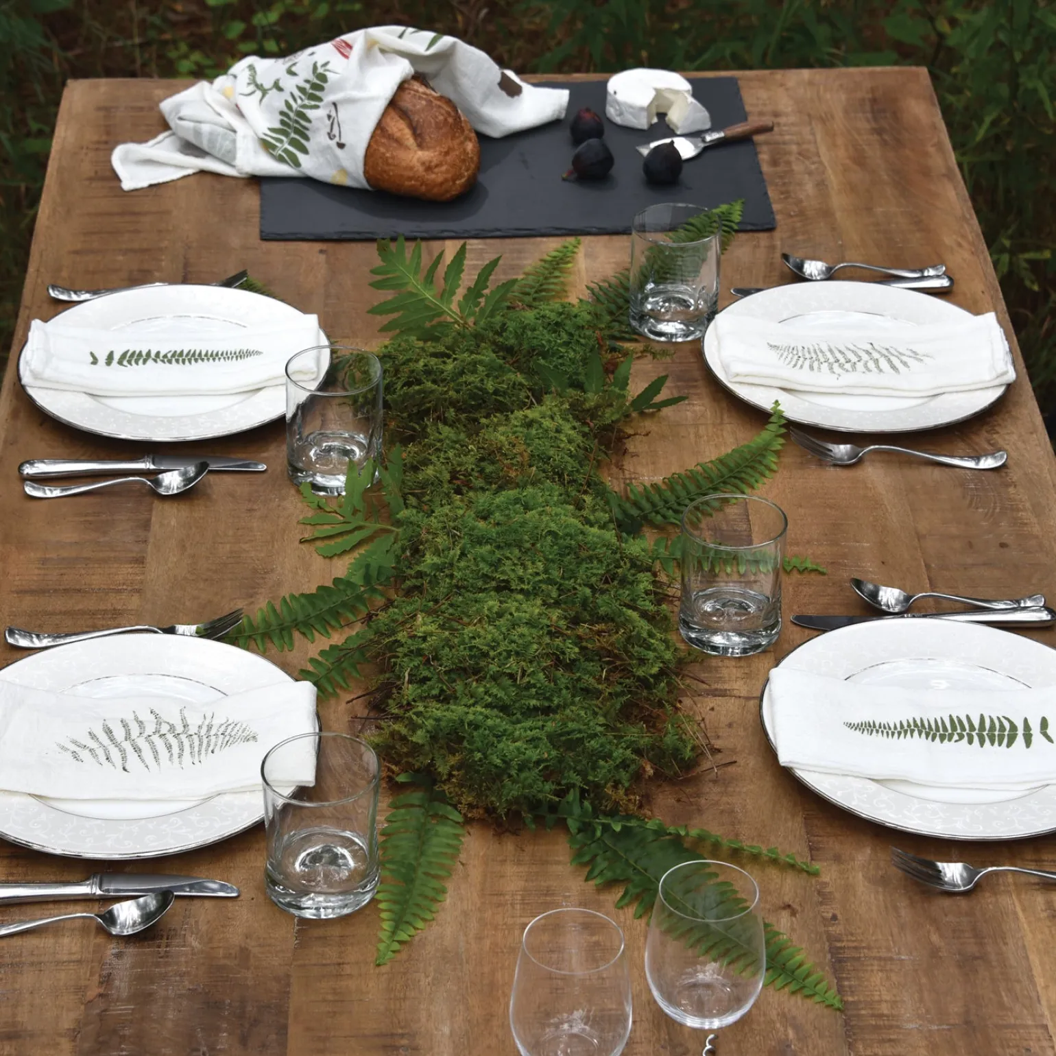 Add some forest pretties to your table with our wood fern + resurrection fern napkins. These napkins are extremely soft and absorbent, meaning they work just like you want your napkins to. Plus, they are safe to bleach, making them perfect for the messiest of dinners!